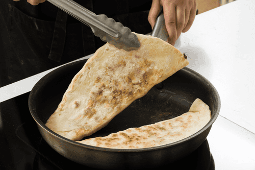 Обжарить лепешки с двух сторон на сухой, хорошо разогретой сковороде до румяных подпалин.