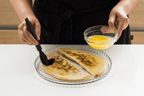 Готовые лепешки тщательно смазать кисточкой растопленным сливочным маслом, добираясь до всех складочек.