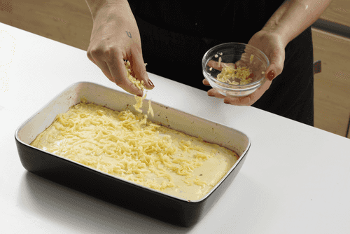 Выпекать запеканку в разогретой до 180 градусов духовке 30–40 минут. За 10 минут до готовности посыпать оставшимся сыром.