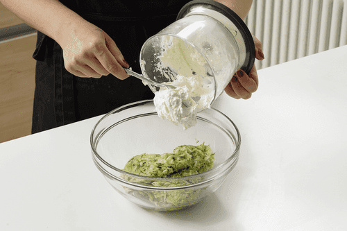 Добавить творог к кабачкам и цукини.