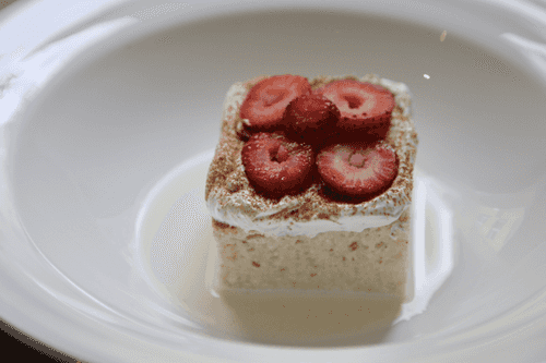 Перед подачей посыпать корицей и украсить ягодами свежей клубники.