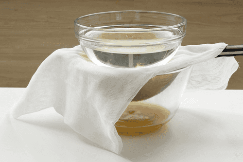 Положить фарш на сито, накрыть марлей, придавить грузом и оставить на час стекать. Если нет времени, завернуть фарш в марлю и как следует отжать руками.