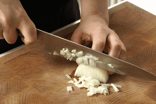 Мелко нарезать половину луковицы.