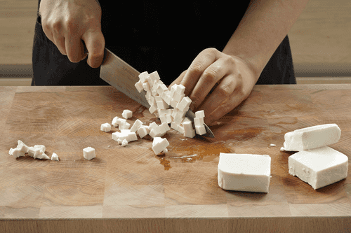 Мелко нарубить брынзу.