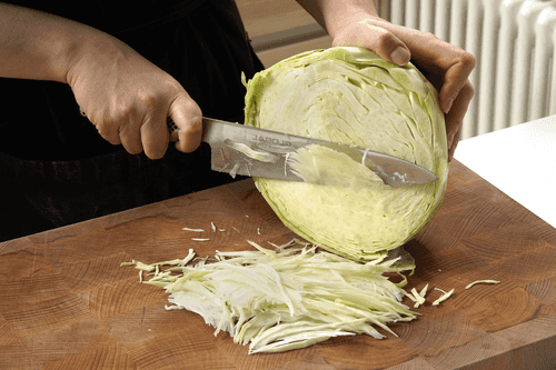 Разогреть сливочное и растительное масло в сковороде. Жарить капусту на сильном огне 5 минут.