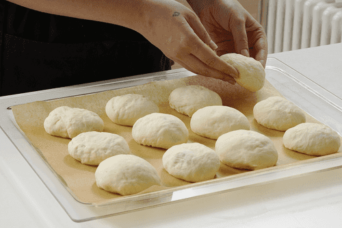 Сформировать шар из готового теста. Положить обратно в смазанную маслом дежу, накрыть пленкой и поставить в теплое место на 1 час (или до тех пор, пока тесто не увеличится вдвое).