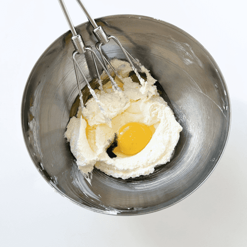 Добавить яйцо и соль, ванильный экстракт, смешать на низких оборотах. Муку просеять с разрыхлителем через мелкое сито и постепенно добавить в яично-масляную смесь, чередуя с молоком (половина муки, смешать, молоко, смешать, половина муки).