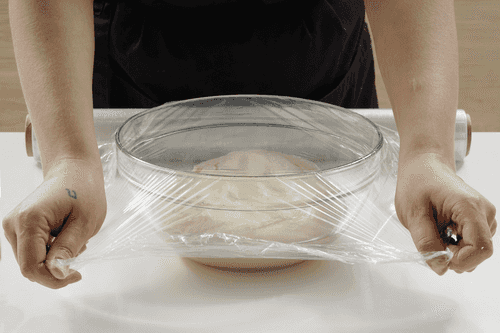 Получившееся тесто положить в миску, предварительно смазанную маслом. Накрыть пленкой.