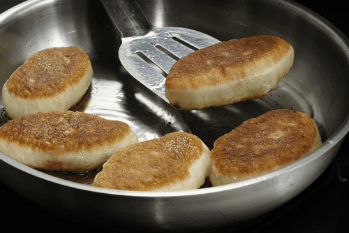Обжарить пирожки в большом количестве кипящего рафинированного масла.