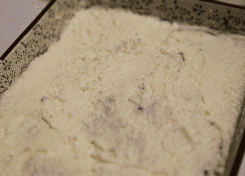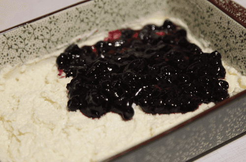 Сверху выложить второй слой творожной массы. Оставить на 30 минут для набухания манки.