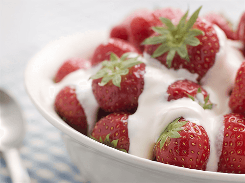 К столу подать клубнику в стаканах или вазочках, украсив взбитой сметаной.