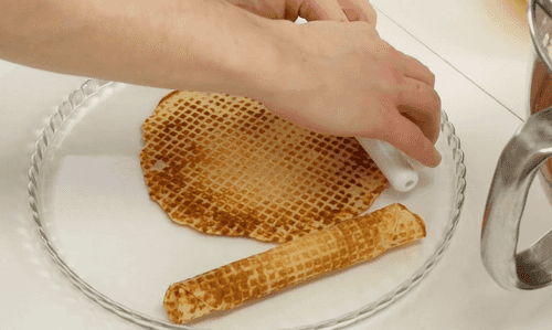 Из горячих тонких вафель можно скрутить трубочки или конусы для мороженого.