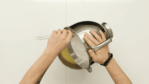 Осторожно, промешивая сверху вниз, понемногу добавлять взбитые белки с солью.