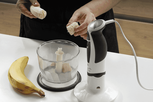 Добавить в карамель банановую мякоть и хорошо перемешать.