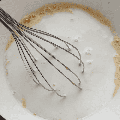 Теплый кефир перелить к яичной массе, добавить щепотку соли и перемешать.