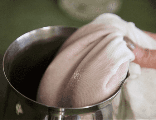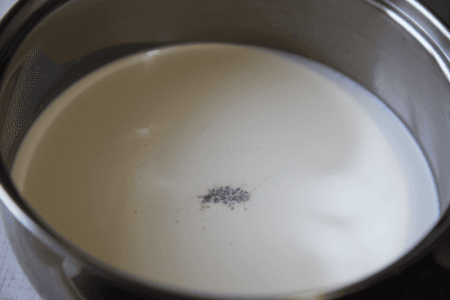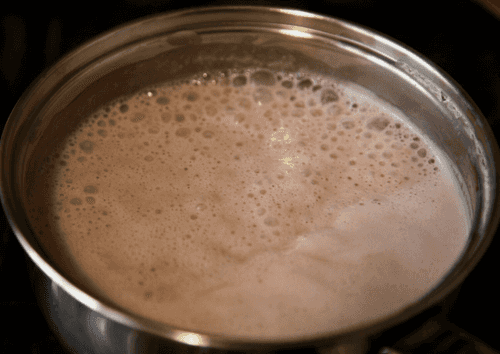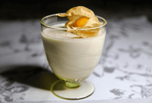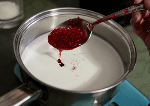 Хорошо перемешать, чтобы растворить желатин, но не взбалтывать. Иначе панна-котта будет с пузырьками.