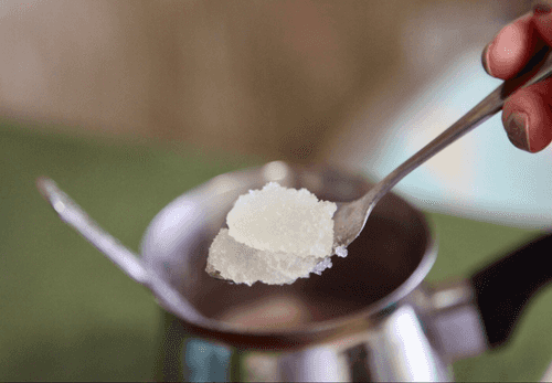 В немного остывшие сливки добавить желатин. Если сливки остыли, то нужно подогреть, иначе желатин не растворится.