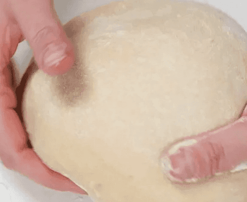 Переложить тесто в смазанную растительным маслом миску, накрыть пленкой и оставить при комнатной температуре на 1,5 часа.
