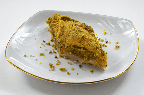 Посыпать измельченными фисташками. Перед подачей дать остыть при комнатной температуре в течение нескольких часов.