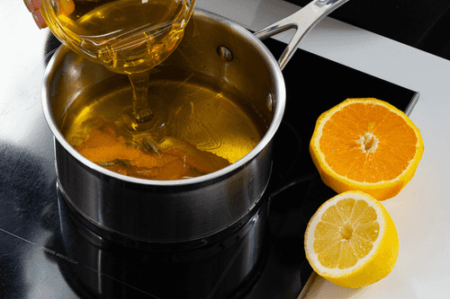 Смешать в сотейнике воду, мед, семена кардамона, апельсиновую цедру и лимонный сок. Довести до кипения на среднем огне.