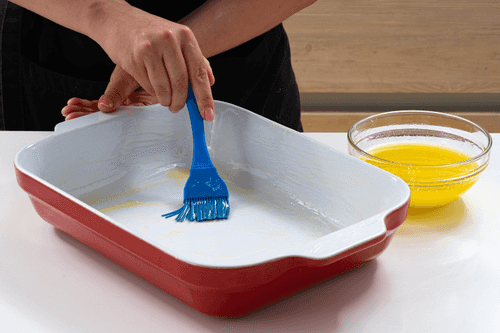 Растопить сливочное масло. Щедро смазать противень, остальное масло отставить — оно понадобится позже.