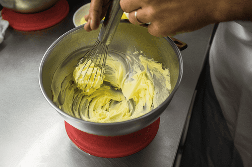 Добавить 225 грамм сиропа «Шарлотт» (он в креме играет роль сахара), 1 грамм ванильной пудры, 2 грамма коньяка. Взбить, пока все не превратится в пышную однородную массу.