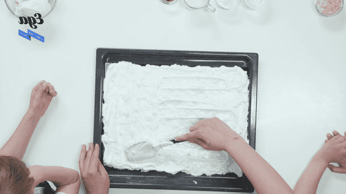 Распределить меренгу равномерно на силиконовом коврике или пергаменте. Отправить в духовку, разогретую до 165 градусов, на 25 минут. Готовой меренге дать остыть на решетке.