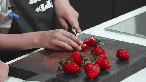 Нарезать клубнику на четвертинки.