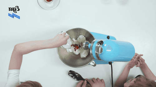 Добавить 100 г миндальных лепестков и крахмал и перемешать, двигаясь снизу вверх, чтобы белки не упали.