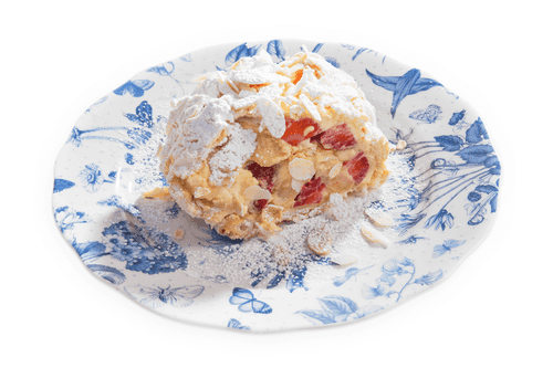 Меренговый рулет с клубникой — это истинное произведение французского кондитерского искусства. Легкий, воздушный и хрустящий снаружи, он раскрывает нежную кремовую текстуру внутри, дополненную свежестью спелой клубники. Этот десерт напоминает изысканные пирожные, которыми наслаждаются в утонченном Париже, сочетая в себе сладость меренги с мягкостью маскарпоне и ароматом ванили. Миндальные лепестки придают ему утонченную хрусткость, а сахарная пудра завершает образ изысканности. Подходит как для утреннего чаепития, так и для торжественных вечеров. Каждый кусочек — это гармония вкусов и текстур, рожденная во Франции и любимая во всем мире.
