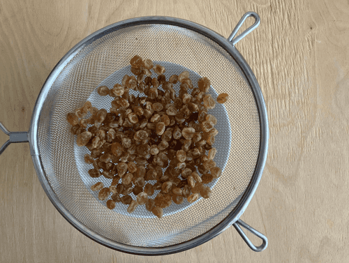 Слить воду с изюма, откинуть на сито, дать стечь.