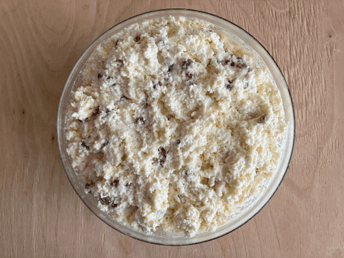 В яйца добавить масло, ваниль, соду, перемешать и добавить в творог.