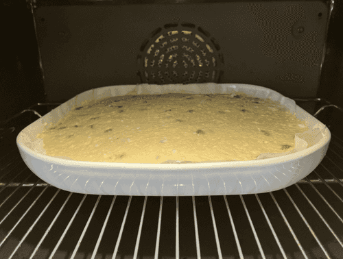 Поставить в разогретую до 200 градусов духовку на 50 мин. Достать из духовки и остудить. При подаче посыпать сахарной пудрой и украсить ягодами.