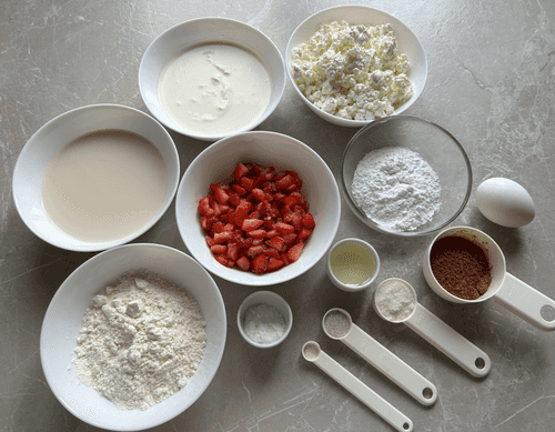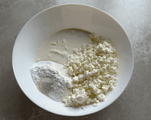 Для крема соединить творог, сливки, сахарную пудру и ванильный сахар.