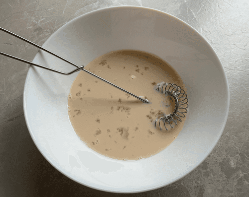 Хорошо перемешать венчиком, чтобы не было комочков муки.