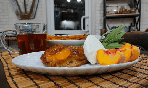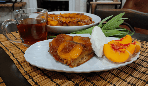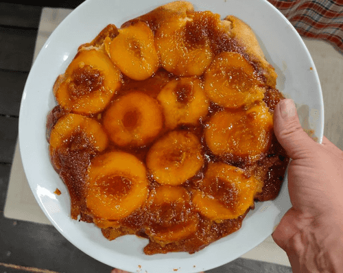 Пирог-перевертыш с персиками, карамелью и корицей