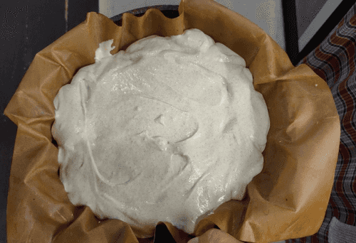 Сверху так же равномерно вылить тесто, оно должно быть как густая сметана.