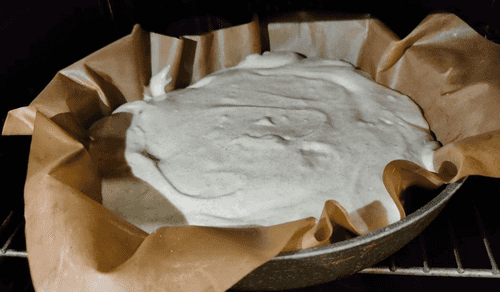 Распределить вылитое тесто по всей поверхности будущего пирога.