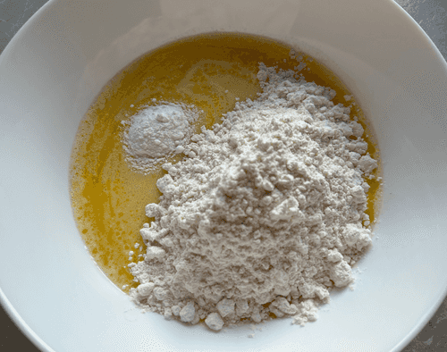 В миску отправить яйцо, сметану, сахар, ванильный сахар, щепотку соли.