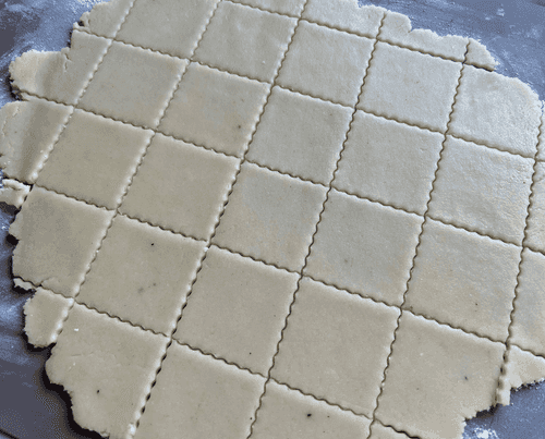 Раскатать тесто в пласт толщиной 2–3 мм.