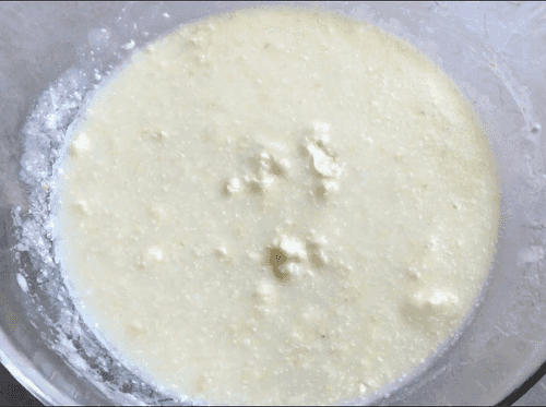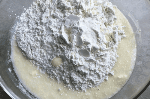 Всыпать оставшуюся часть муки и разрыхлитель.