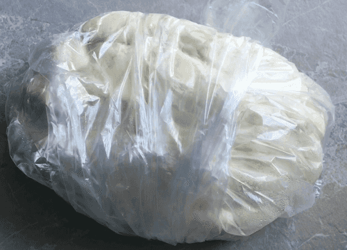 Вымешать тесто и убрать в пакет. Поместить в холодильник на 20 минут.