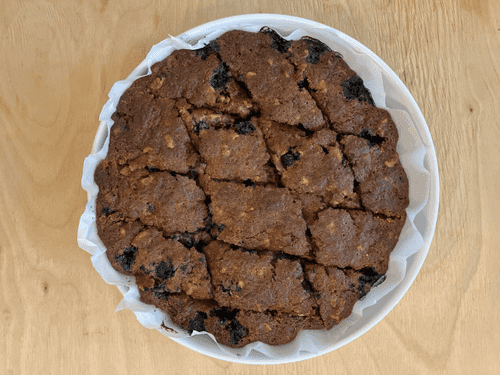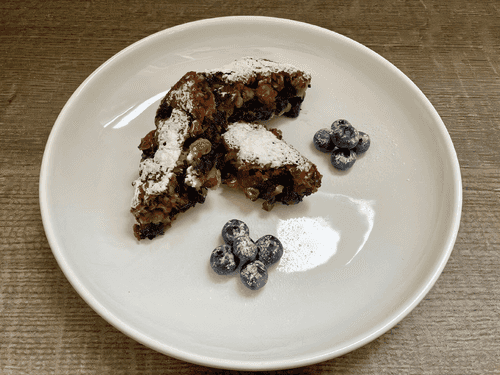 Достать из духовки, нарезать на печенье и остудить. Подавать, остудив и предварительно украсив сахарной пудрой и ягодами голубики.