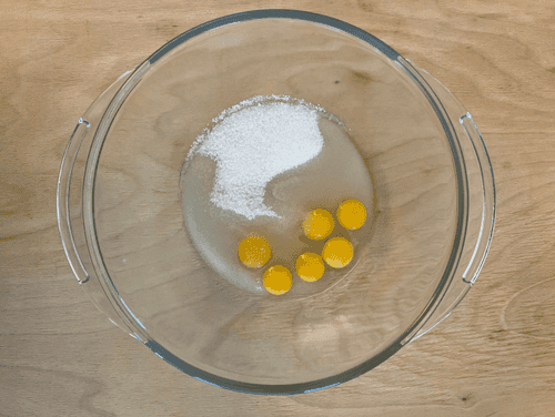 Разбить яйца, добавить сахар и погашенную соду.
