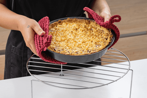 Выпекать пирог 20–25 минут при 200 градусах. Готовый пирог охладить на решетке.