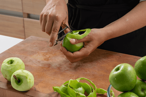 Яблоки очистить от кожи и косточек, нарезать.
