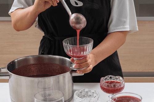 Яблочный холодец — это изысканный десерт русской кухни, который сочетает в себе насыщенный вкус яблок, тонкие пряные нотки корицы и благородные оттенки вина. Исторически подобные фруктовые холодцы готовили в дворянских домах, где ценили гармонию вкуса и элегантность подачи. Яблоки, сначала проваренные до мягкости, превращаются в нежное пюре, которое обогащается вином, лимонным соком и черносмородиновым соком, придающим легкую кислинку. После охлаждения в течение суток десерт приобретает шелковистую текстуру и яркий фруктовый аромат. Подача с свежими ягодами делает его еще более утонченным. Идеален как завершающий аккорд праздничного застолья, он дарит чувство уюта и наслаждения, пробуждая воспоминания о теплых семейных вечерах.