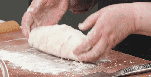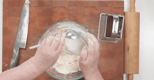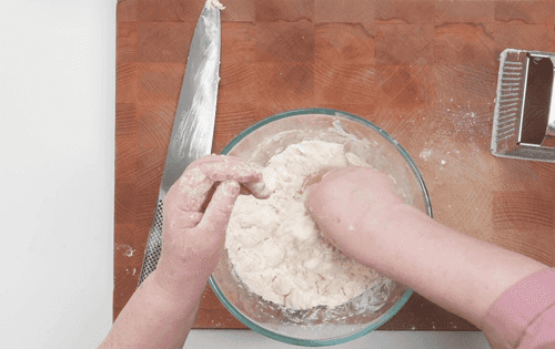 Сформовать толстую лепешку, обернуть пленкой и убрать в холодильник на 30–40 минут.
