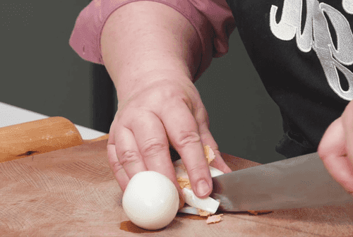 Яйца (4 шт.) залить холодной водой, поставить на огонь, варить 8 минут после закипания, а затем оставить на такое же время в горячей воде.
