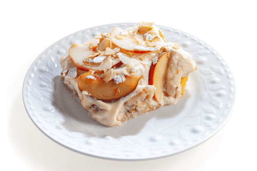 Персиковое тирамису – это изысканный десерт, который объединяет традиции итальянской кухни с летней свежестью ароматных персиков. Вдохновленный классическим тирамису, этот вариант добавляет фруктовую нежность к богатому крему из маскарпоне. Сладкие персики проходят бережную обработку, превращаясь в пюре, которое придает десерту естественную сочность. Савоярди, пропитанные зеленым чаем с амаретто, создают тонкую гармонию вкусов, а воздушный крем на основе яичных желтков и белков делает текстуру легкой и шелковистой. Украшенный миндальными лепестками и дольками свежих персиков, этот десерт не только радует глаз, но и идеально подходит как освежающее угощение в летний день. Персиковое тирамису – это элегантное сочетание мягкости, сладости и утонченного аромата, достойное самых изысканных вкусов.